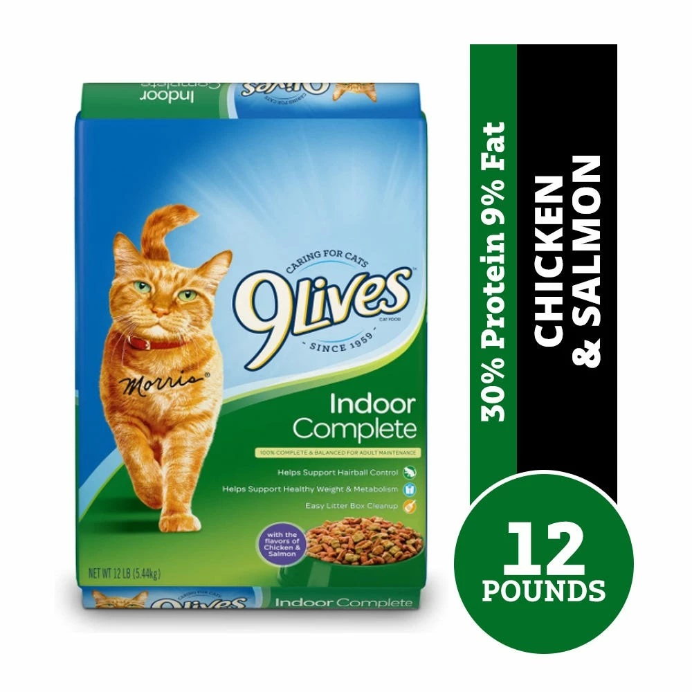 9Lives Indoor Complete cat food is specially formulated with an Advanced Nutrient System to help indoor cats maintain their ideal weight and digestive health. Made with delicious cuts of real salmon and chicken, and enriched with essential vitamins and the taste of garden greens, it’s everything your indoor cat needs to thrive inside.