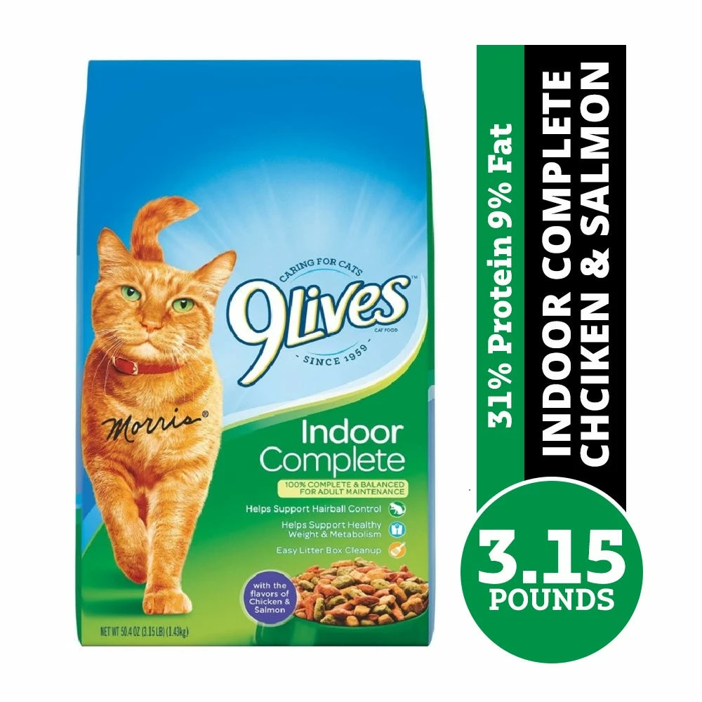 9Lives Indoor Complete® cat food is specially formulated with an Advanced Nutrient System to help indoor cats maintain their ideal weight and digestive health. Made with delicious cuts of real salmon and chicken and enriched with essential vitamins and the taste of garden greens it’s everything your indoor cat needs to thrive inside.