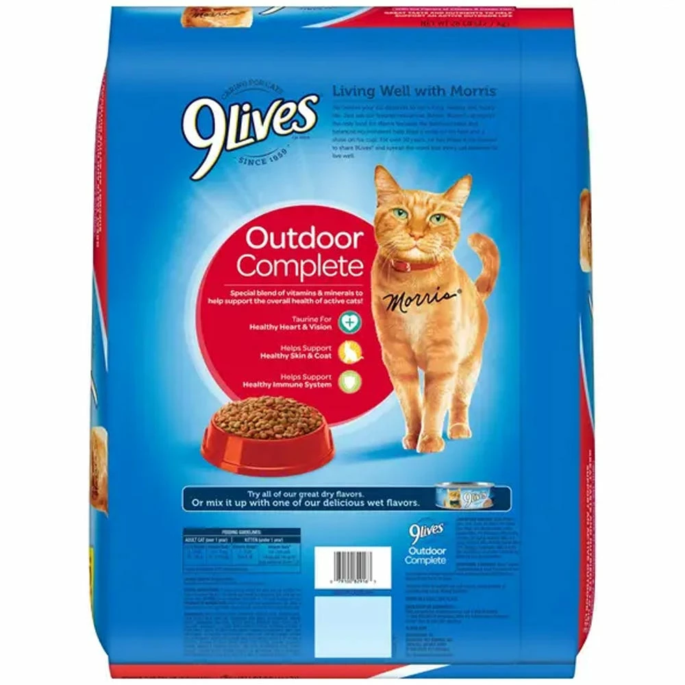 Caring for cats. Since 1959. Morris. Great taste and nutrients to help support an active outdoor life. Protein to provide energy. Helps support healthy immune system. Helps support strong bones & teeth. 100% complete balanced nutrition for all life stages. 28 lb bag! Living well with Morris. We believe your cat deserves to live a long, healthy and happy life. Just ask our favorite rescue cat, Morris. 9Lives cat food is the only food for Morris because the delicious taste and balanced nourishment help keep a smile on his face and a shine on his coat. For over 50 years, he has made it his mission to share 9Lives and spread the word that every cat deserves to live well.