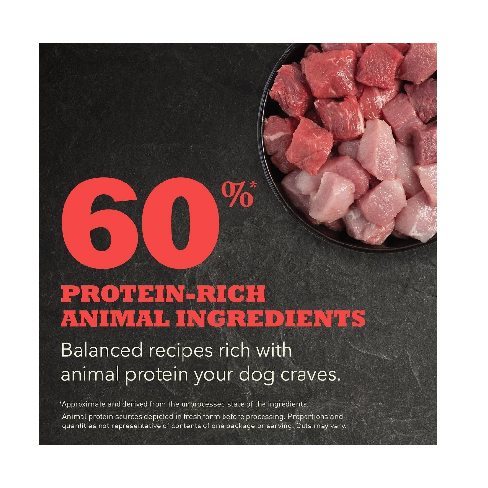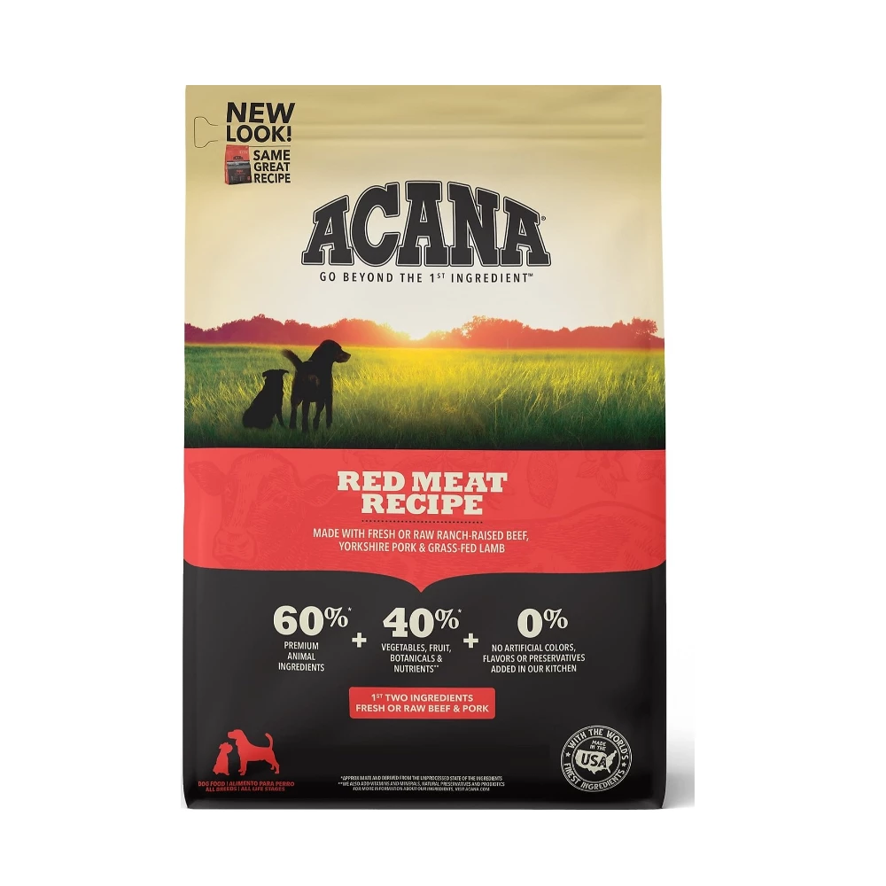 Feed your furry friend a meal that’s nutritious, delicious and full of protein with ACANA Red Meat Recipe Grain-Free Dry Dog Food. This wag-worthy recipe is crafted with 60% animal ingredients including ranch-raised beef and Yorkshire pork, plus 40% fruits, vegetables and botanicals. There are also vitamins, minerals, natural preservatives and probiotics added, and zero artificial colors, flavors or preservatives. ACANA always uses premium ingredients from a curated group of trusted farmers, ranchers and fishers, and every batch of food is made in their state-of-the-art Kentucky kitchen.