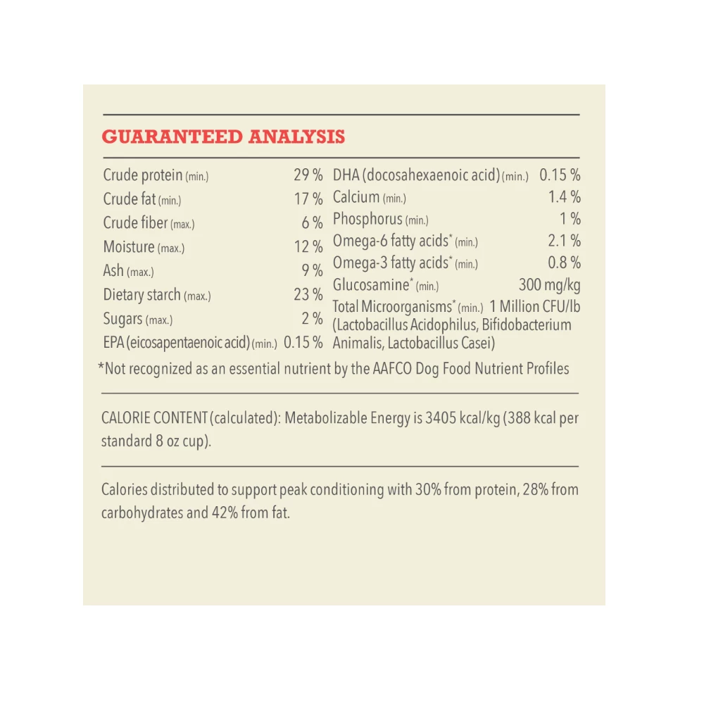 Caloric Content: 3,405 kcal/kg, 388 kcal/cup