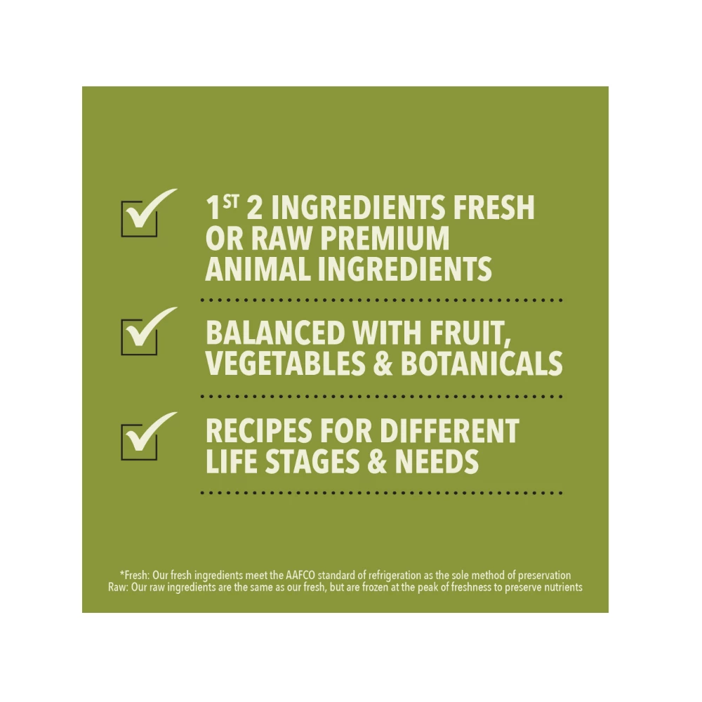 - The first 2 ingredients in this nutrient-dense, high-protein recipe are fresh or raw beef and pork. The fresh ingredients use refrigeration as the sole method of preservation, while the raw ingredients are frozen at their peak freshness.
