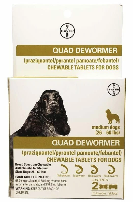 Nobody wants their dog to suffer from worms, so the Bayer Quad Medium Dog De-Wormer provides effective at-home treatment. Designed to remove all four common worms, including tapeworm, hookworms, roundworms and whipworms, it takes the guesswork out of treating him. It comes in an easy-to-administer chewable tablet, which can either be directly fed to willing dogs, or disguised in their food. It comes from the trusted Bayer brand, and is safe for pets over three weeks of age.