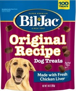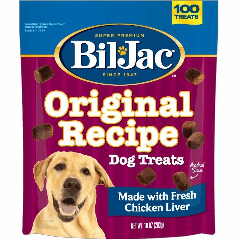 There’s no trick your crafty canine won’t do to get his paws on some Bil-Jac Original Recipe with Liver Dog Treats. Featuring savory and succulent fresh chicken liver as the very first ingredient followed by real chicken, these soft, chewy morsels have a scrumptious, meaty flavor dogs crave. They’re the perfect-sized positive reward training treat for medium to large breed dogs, and are easy to break apart for smaller breeds. The resealable double-zipper pouch helps make sure all that irresistible aroma, taste and texture stays fresh down to the very last mouth-watering bite.