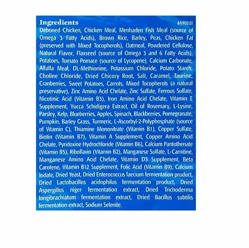 - Delicious deboned chicken is the first ingredient, followed by wholesome whole grains and veggies