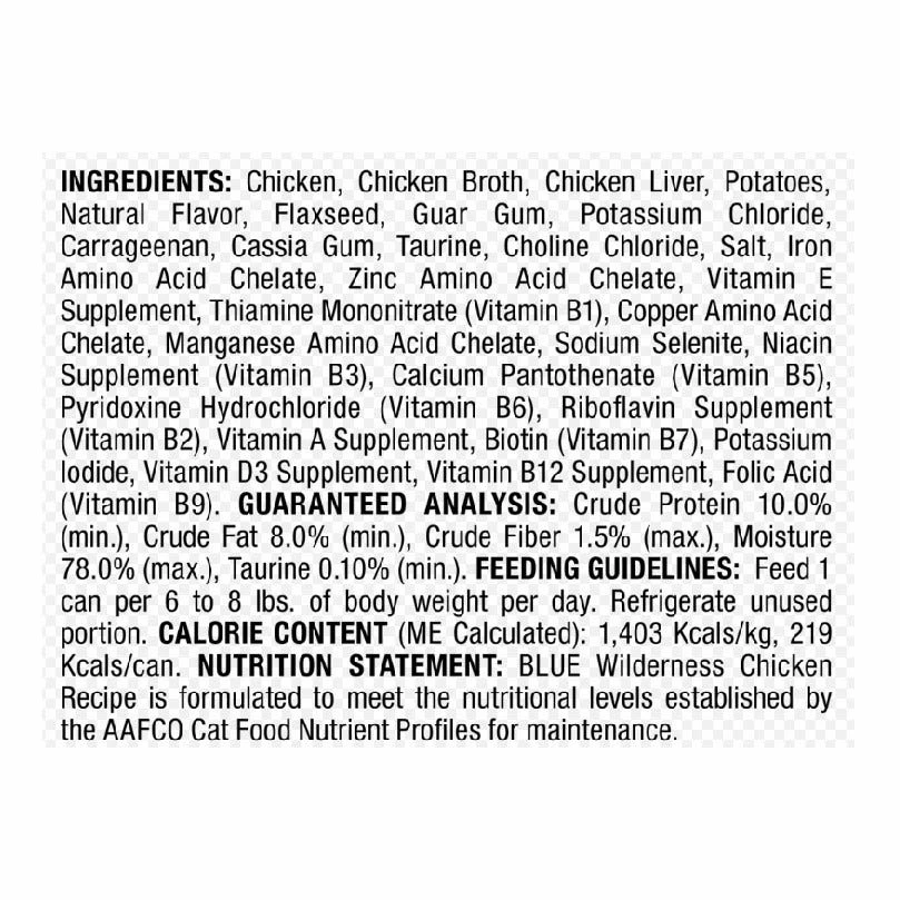 Blue Buffalo Wilderness Chicken Recipe Canned Cat Food feasts are free from wheat, soy, and poultry by-products, packed full of nutrients, and guaranteed to deliver the purr. The high-protein formula helps your cat’s muscles stay lean and strong.