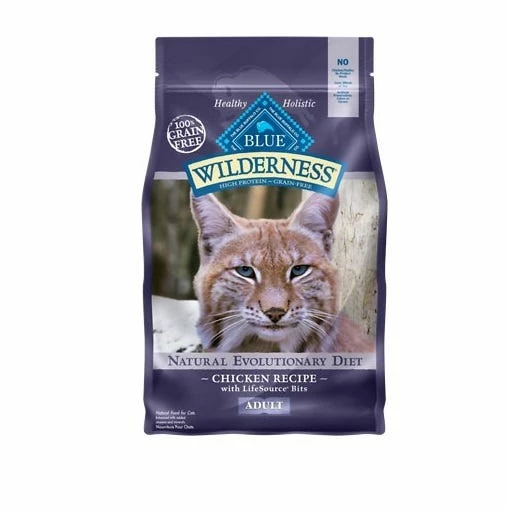 A walk on the wild side for the most timid tabby! Feed your cat a diet that mimics the eating habits of the lynx with Blue Buffalo Wilderness Chicken Recipe Dry Cat Food. It has huge amounts of protein from chicken and turkey, sweet potatoes, cranberries, blueberries, and carrots that will keep her playful and pretty and make her howl with delight.