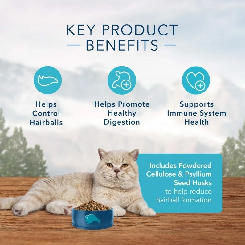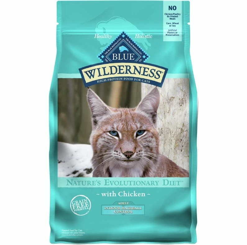 Inspired by the diet of the lynx, a tireless and legendary hunter, BLUE Wilderness is a protein-rich, grain-free food that contains more of the delicious meat cats love. This Indoor Hairball & Weight Control Recipe features delicious, protein-rich chicken, sweet potatoes as complex carbohydrates, and cranberries, blueberries and carrots for antioxidant enrichment.