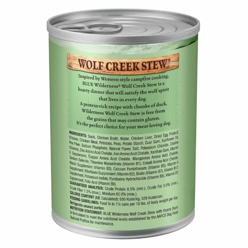 Appeal to your canine’s natural instincts by serving this BLUE Wilderness Wolf Creek Hearty Duck Stew for Dogs, which contains chunks of real duck for a delicious flavor your pooch is sure to love. The grain-free food is formulated with natural ingredients that are loaded with the vitamins and minerals your dog needs for a wholesome, balanced diet. Contains chunks of duck to satisfy your dog’s appetite; made with natural ingredients in a grain-free formula for wholesome nutrition; fortified with the vitamins and minerals your dog needs for balanced nutrition.