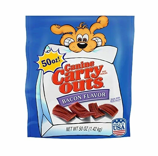 Dogs love bacon. Doesn’t your dog deserve to be rewarded with a great bacon flavored snack? Canine Carry Outs bacon flavor chewy snacks for dogs don’t just look like bacon. They are made with real bacon as well. So why not reward him every day with what he loves – Canine Carry Outs Bacon Flavor Dog Treats! Try all of the great flavors today.