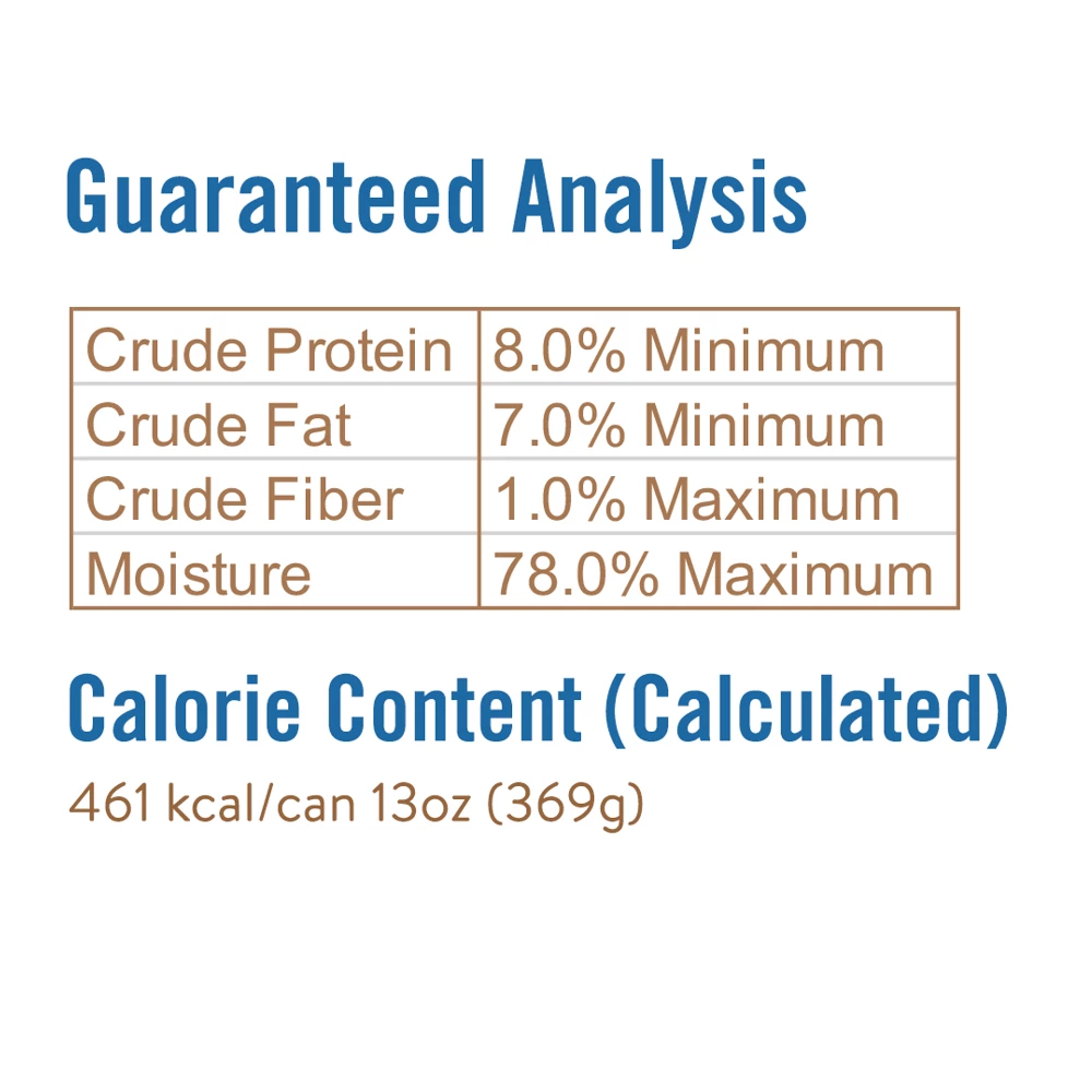 Caloric Content: 1,249 kcal/kg, 461 kcal/13-oz can