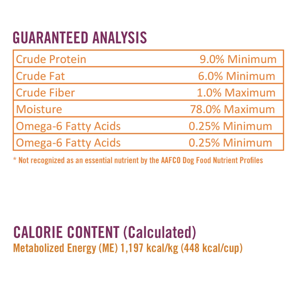 Caloric Content: 1197 kcal/kg, 448 kcal/can