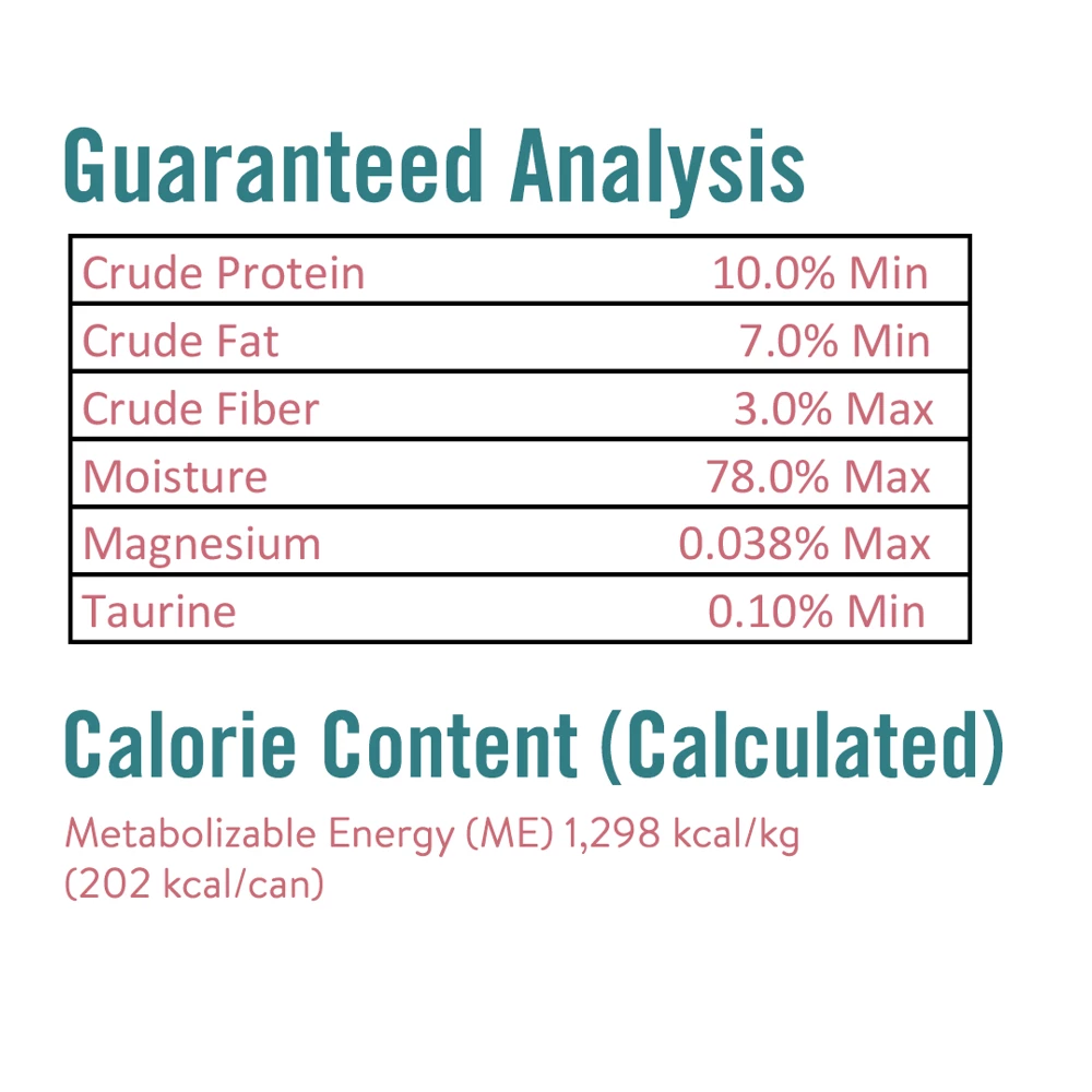 Caloric Content: 1225 kcal/kg, 191 kcal/can