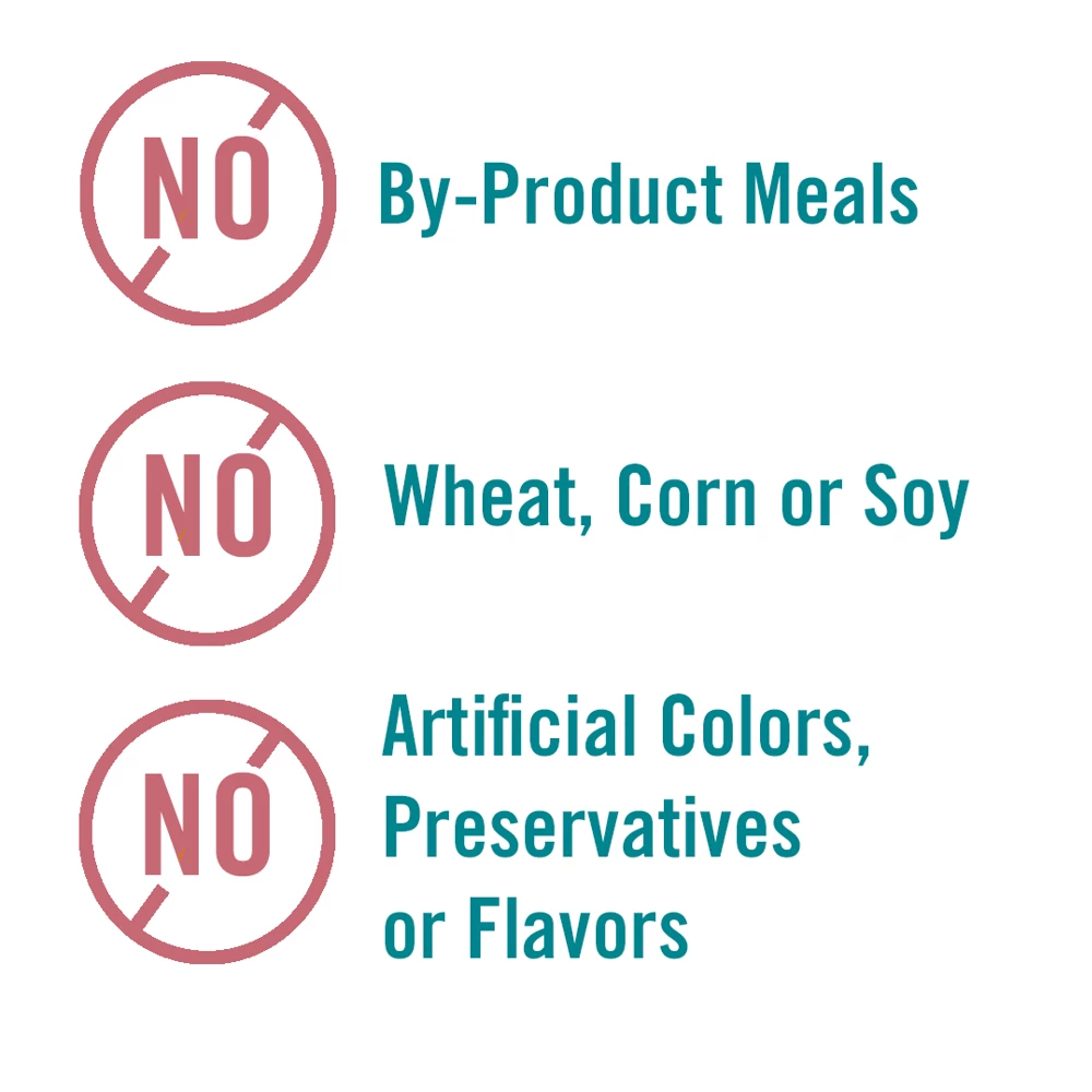 - Real chicken as the first ingredient blended with turkey, duck and salmon.