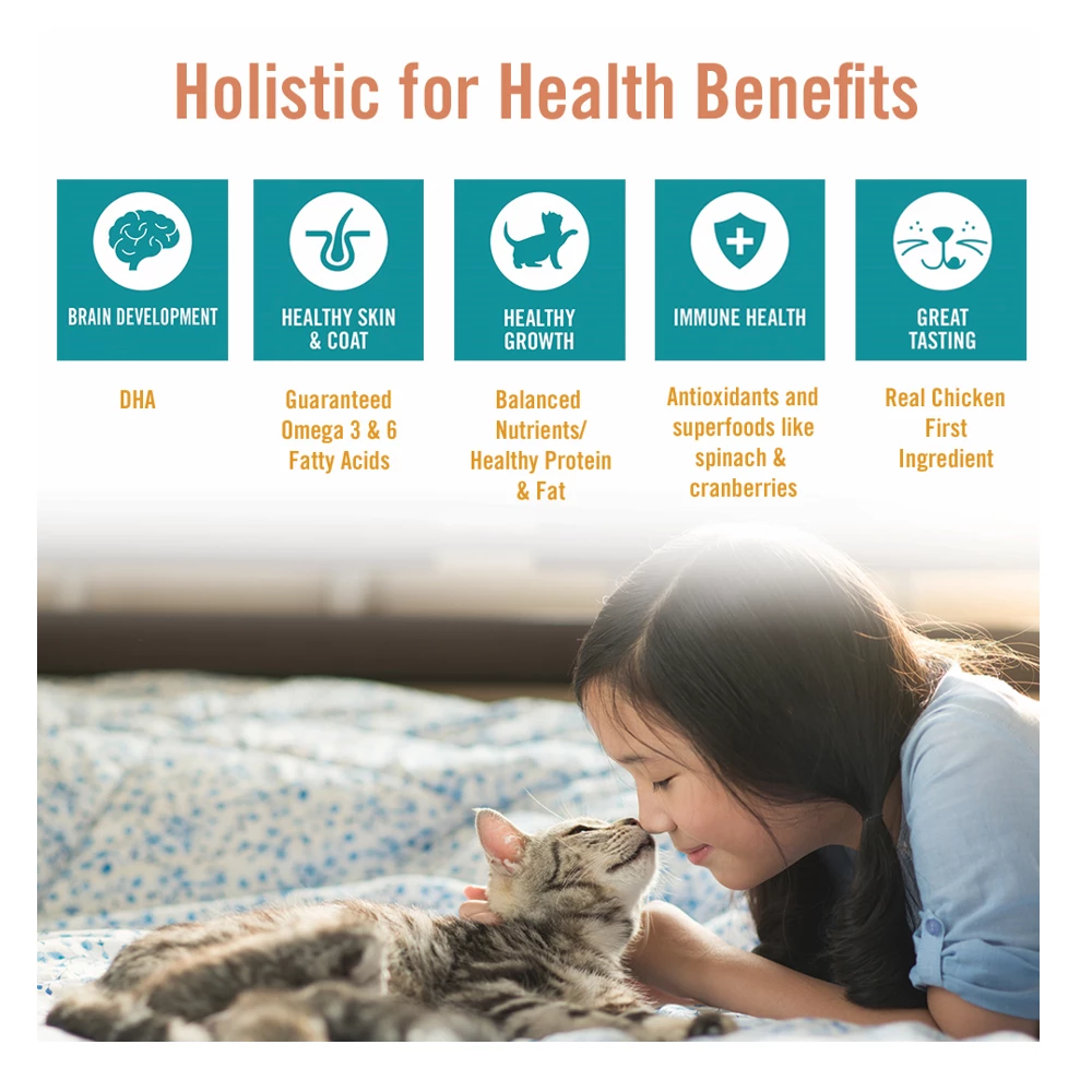 - Formulated specifically for kittens with DHA and antioxidant taurine.
