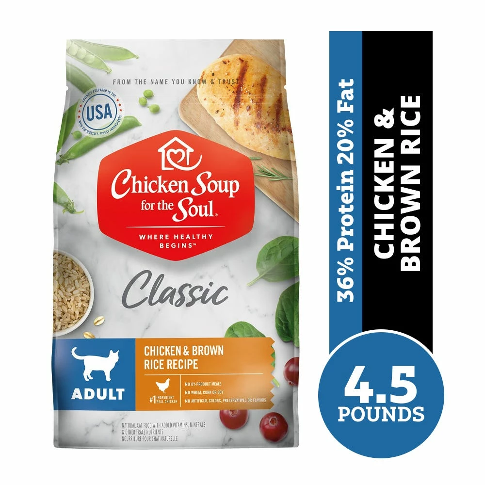 Give the newest member of your family the nutrition she needs with Chicken Soup for the Soul Kitten Dry Cat Food. This diet contains DHA for brain development and the antioxidant taurine for healthy eyesight and hearing in your young one. Omega 3 and 6 fatty acids promote healthy skin and coat while superfoods like spinach and cranberries help build immune health. This food also includes real chicken as the first ingredient and is blended with turkey, duck and salmon making for a taste your kitty will love. With no by-product meals, wheat, corn or soy, Chicken Soup for the Soul Kitten Dry Cat Food is a healthy and safe option for your paw-tner.
