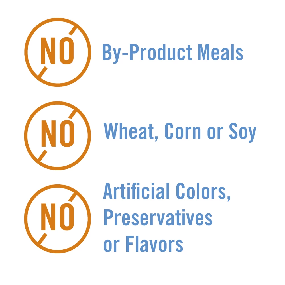 - Real chicken as the first ingredient blended with turkey, duck and salmon.