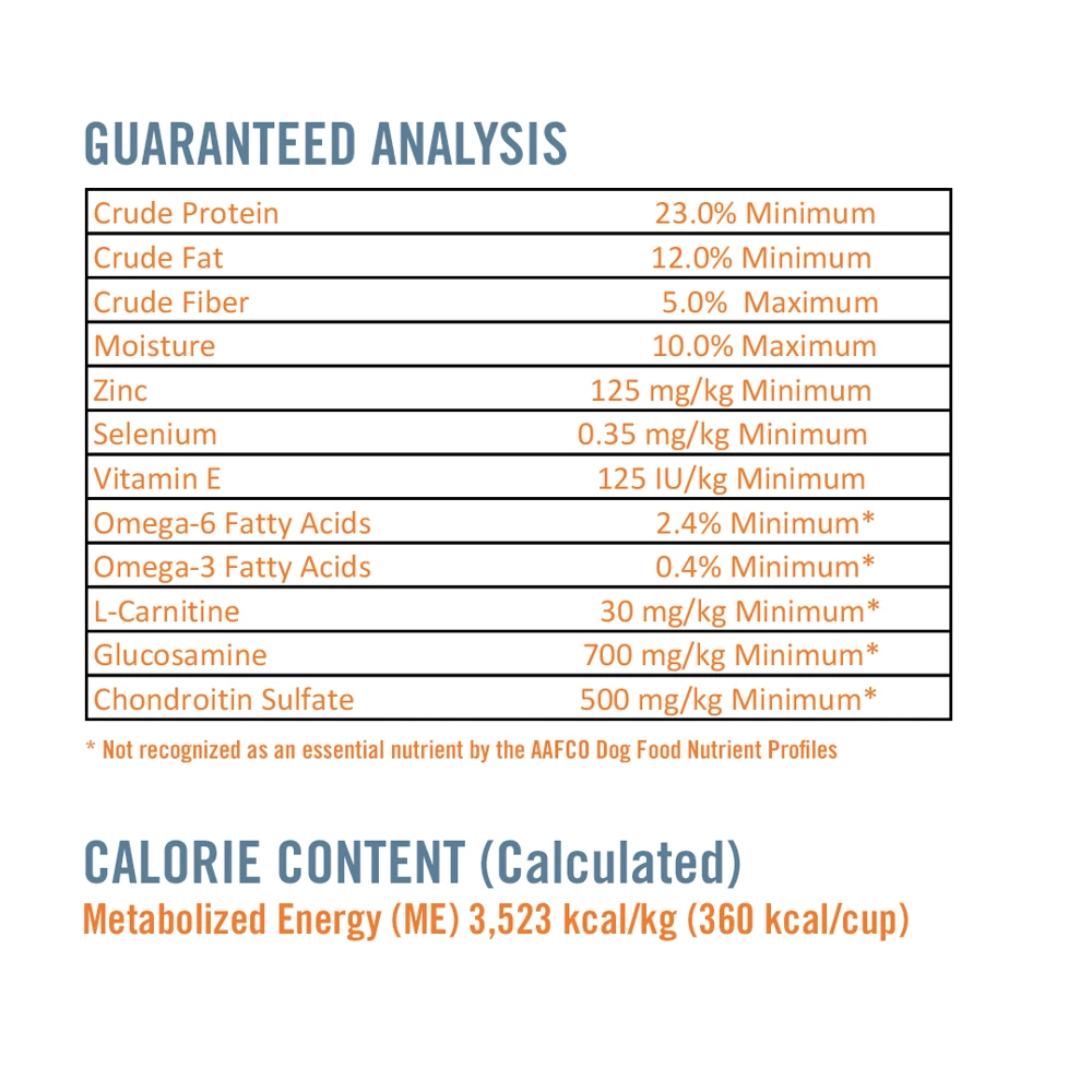 Caloric Content: 3,523 kcal/kg, 360 kcal/cup