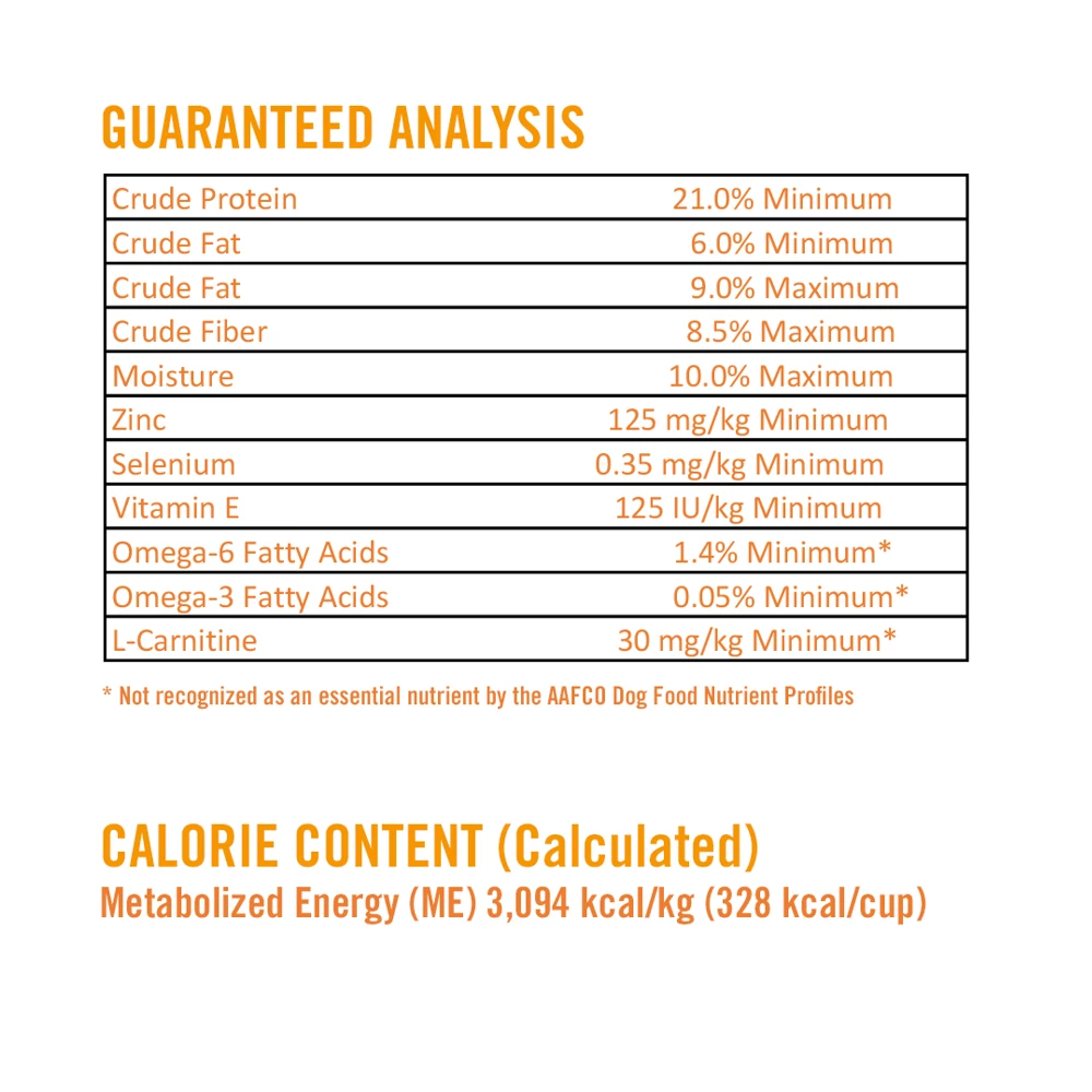 Caloric Content: 3,094 kcal/kg, 328 kcal/cup