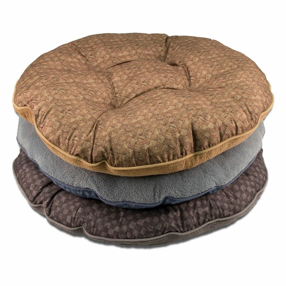 - 35″ Tufted Round Bed w/ Reversible Microtec and Basket Weave Print Surfaces