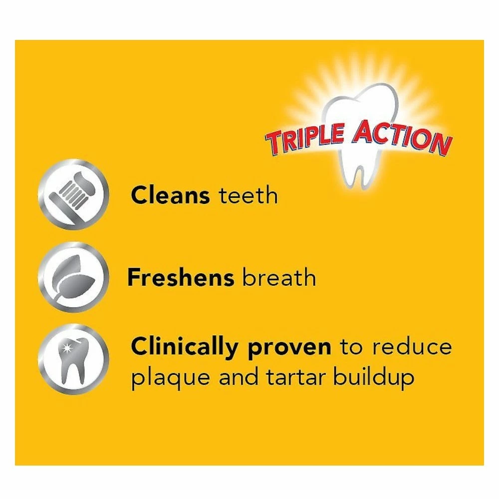 - Chewy, textured treats designed to promote daily oral health. Triple action: reduces tartar buildup, cleans teeth, and freshens breath