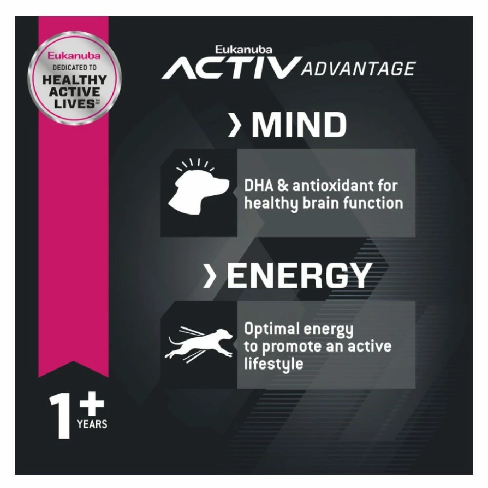 Your medium breed dog is anything but ordinary, and he requires extraordinary nutrition to perform his best. Fuel your companion’s body, mind, and energy with Eukanuba Adult Medium Breed Dry Dog Food. Animal proteins, glucosamine, and chondroitin sulfate help keep muscles lean and joints limber and strong. DHA and vitamin E help support healthy brain function to help your adult dog stay sharp. Optimal levels of fats and carbohydrates help fuel an active lifestyle. 3D DentaDefense supports dog dental care by reducing tartar buildup for clean teeth and healthy gums. A natural fiber and prebiotic blend aids gentle digestion to help keep your medium breed dog feeling healthy. Plus, high-quality chicken is the first ingredient in this adult dry dog food to power your dog’s day. Mix this kibble with your dog’s favorite wet food for the perfect complement. Your dog always puts his best paw forward for you. Return the favor by feeding him Eukanuba and fuel the extraordinary in every day.