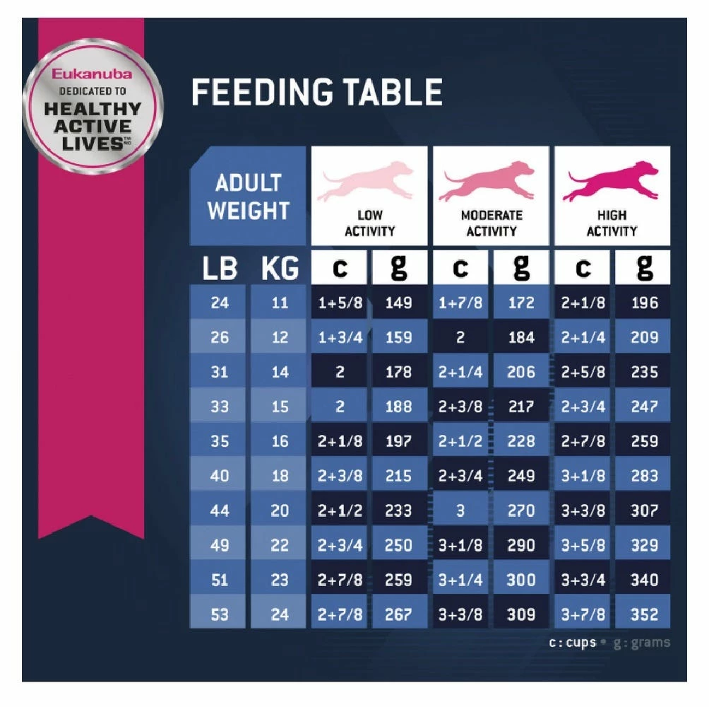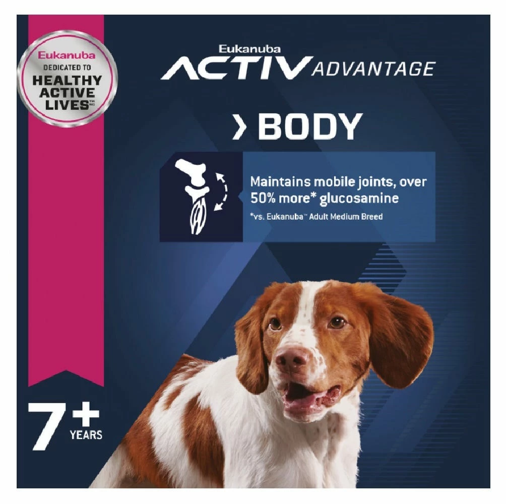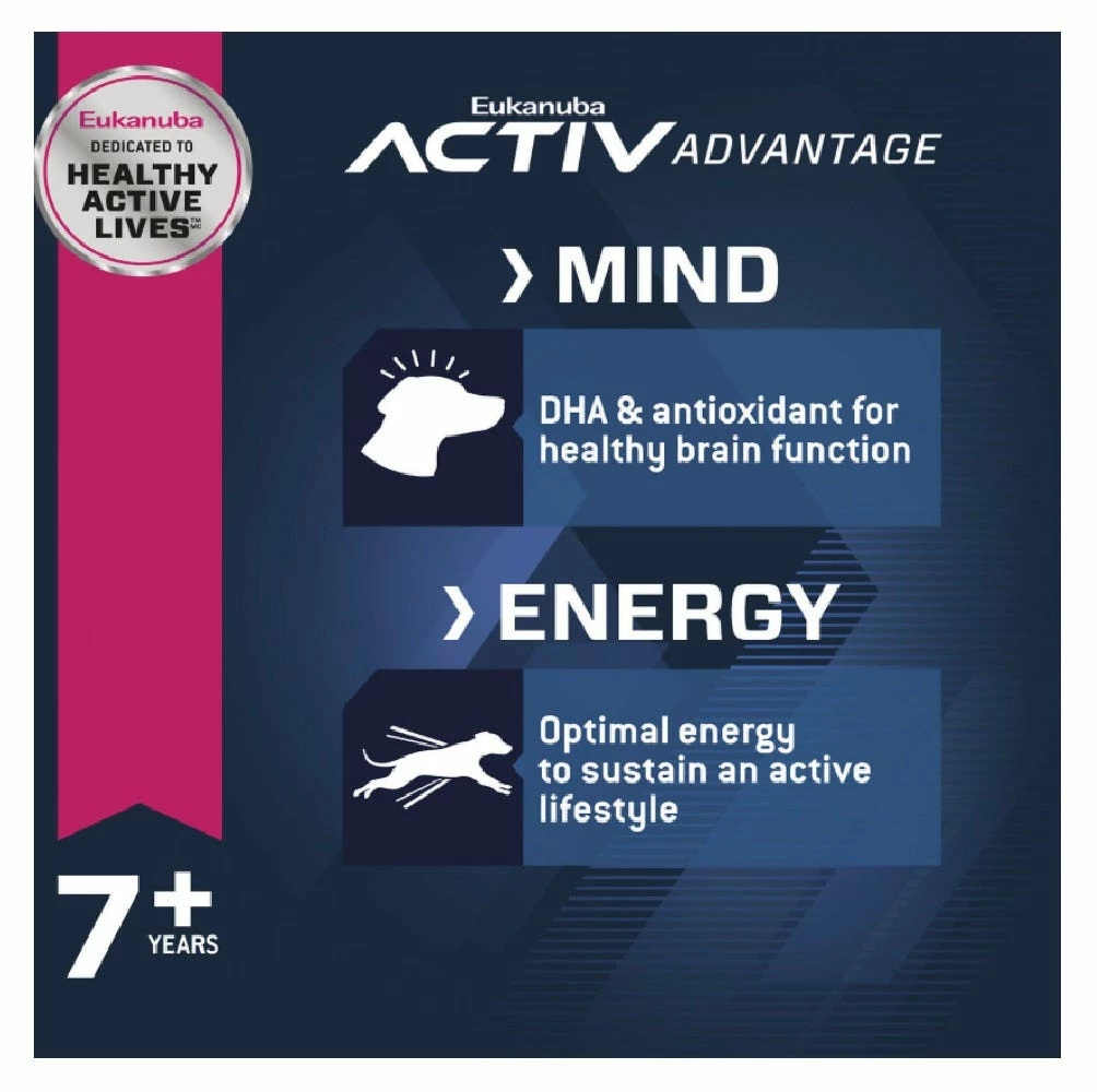 Your medium-sized dog is up for anything, from running to hiking to fetching, and it’ll take more than age to slow him down. Power his active lifestyle with Eukanuba Senior Medium Breed Dry Dog Food, a diet created specifically for your aging dog’s body, mind, and energy. High-quality chicken is always the first ingredient, because your lively senior deserves high-quality protein. Help keep your senior dog’s joints and muscles limber with glucosamine and chondroitin sulfate, and help him stay sharp with DHA and antioxidants to support healthy brain function. This senior dog food diet is formulated with optimal amount of fats and carbohydrates to help maintain your older dog’s energy levels. Eukanuba 3D DentaDefense supports dog dental care by reducing tartar buildup to keep their teeth and gums healthy. This diet also provides immune system support to help strengthen your dog’s natural defenses. Pair it with his favorite wet food for the perfect complement to your active dog’s diet. Your hardworking dog is no ordinary senior, so feed him Eukanuba Senior Medium Breed Dry Dog Food and make his golden years the start of an extraordinary new adventure.