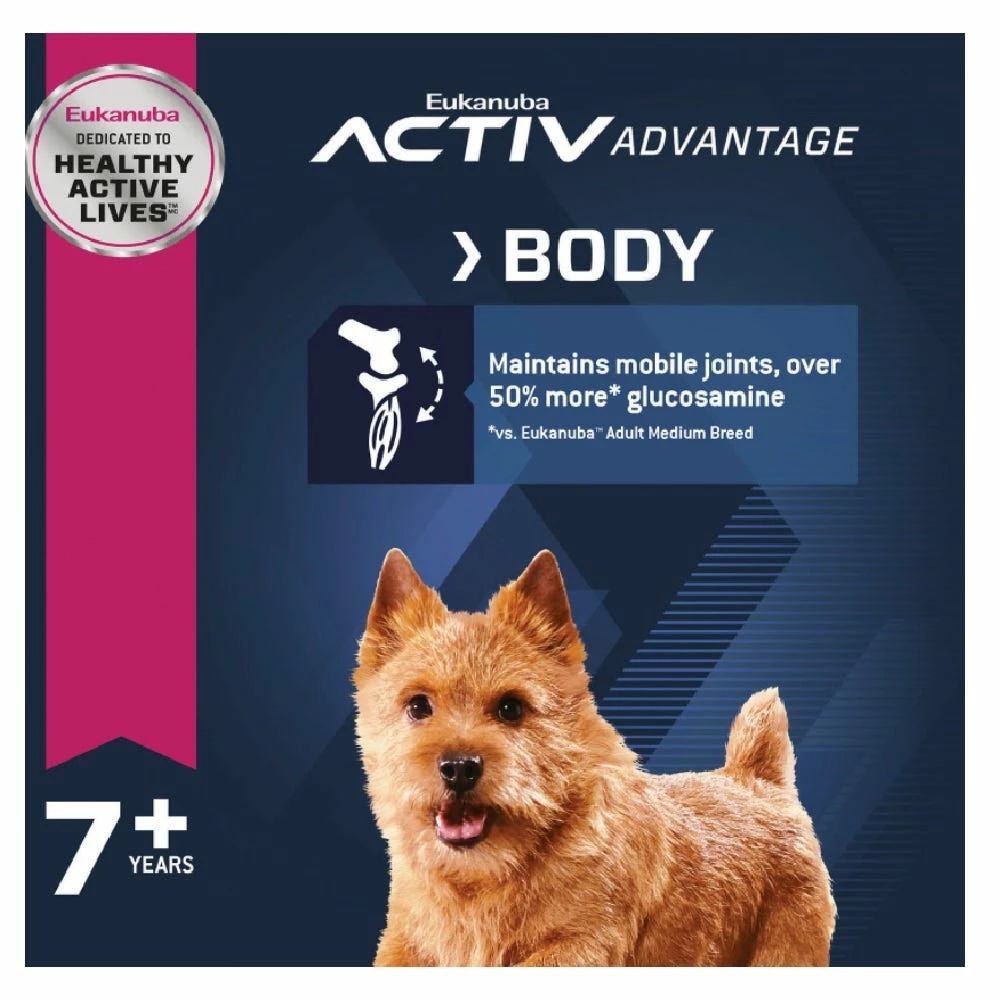 - Helps keep joints mobile and supports lean muscles in active seniors with chondroitin sulfate and 50% more glucosamine (vs. Eukanuba Small Breed dry dog food)