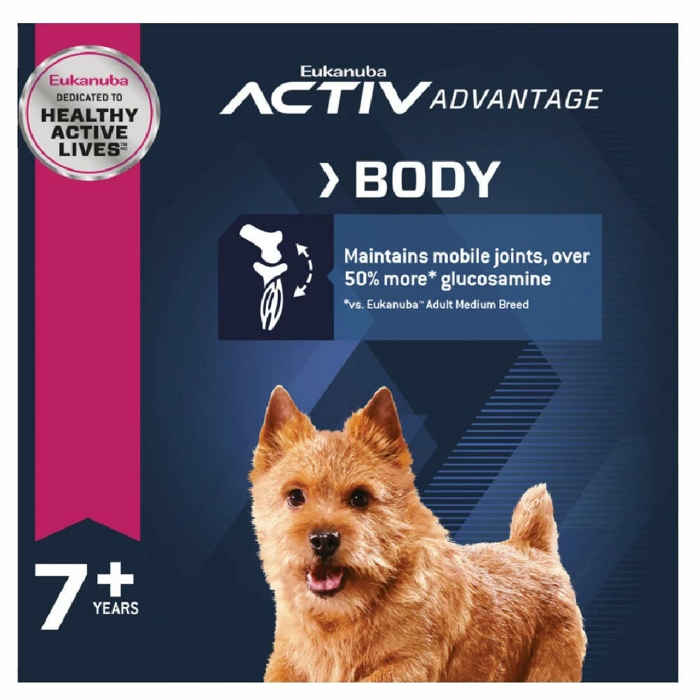 - Helps keep joints mobile and supports lean muscles in active seniors with chondroitin sulfate and 50% more glucosamine (vs. Eukanuba Small Breed dry dog food)