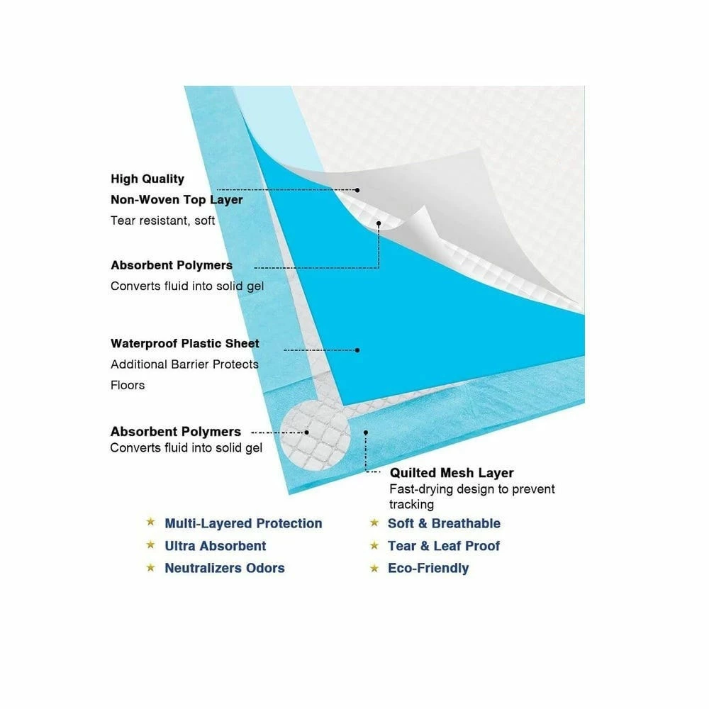 Take the hassle out of house training dogs and puppies. Made of advanced technology polymer for extra absorbency, these pads feature a leak proof backing and sealed edges to ensure easy cleanup. These Puppy Pads are specially scented to attract and encourage dogs and puppies to use them.