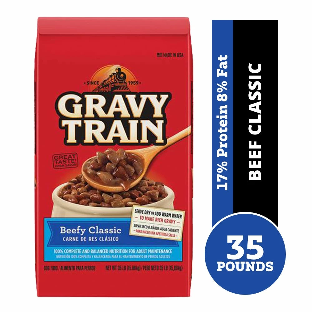 Gravy Train® Beefy Classic Dog Food is formulated to meet the nutritional levels established by the AAFCO Dog Food Nutrient Profiles for Maintenance.Â