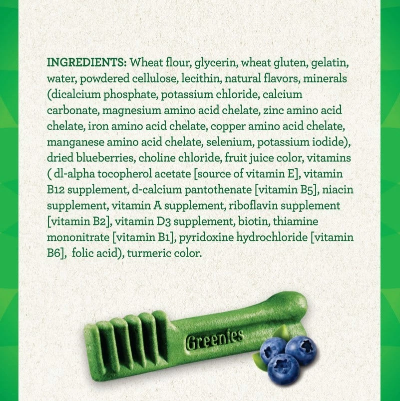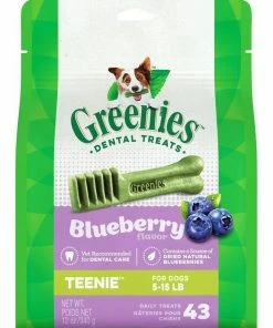 - Contains one (1) 12-oz., 43-count pack of GREENIES Blueberry Flavor TEENIE Dog Dental Chews