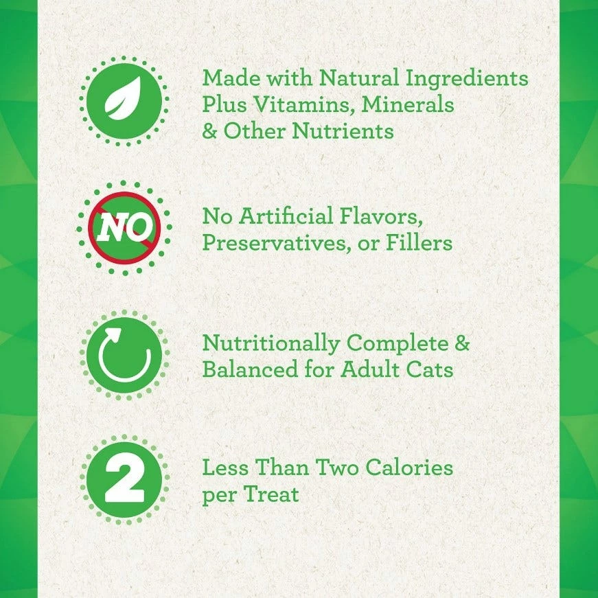 - Delicious, dual-textured treats feature a crunchy outer layer with a moist, savory center for a taste and texture your cat won’t be able to resist
