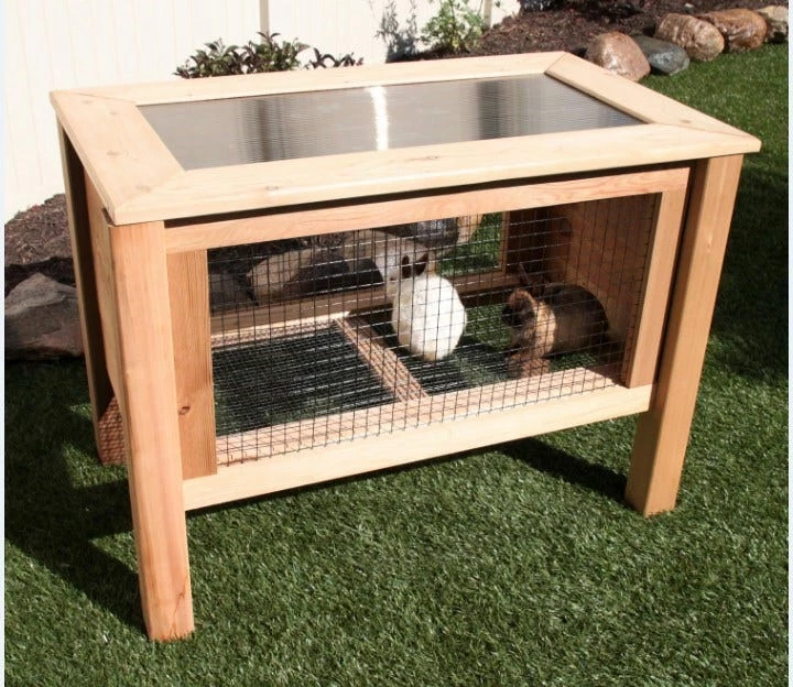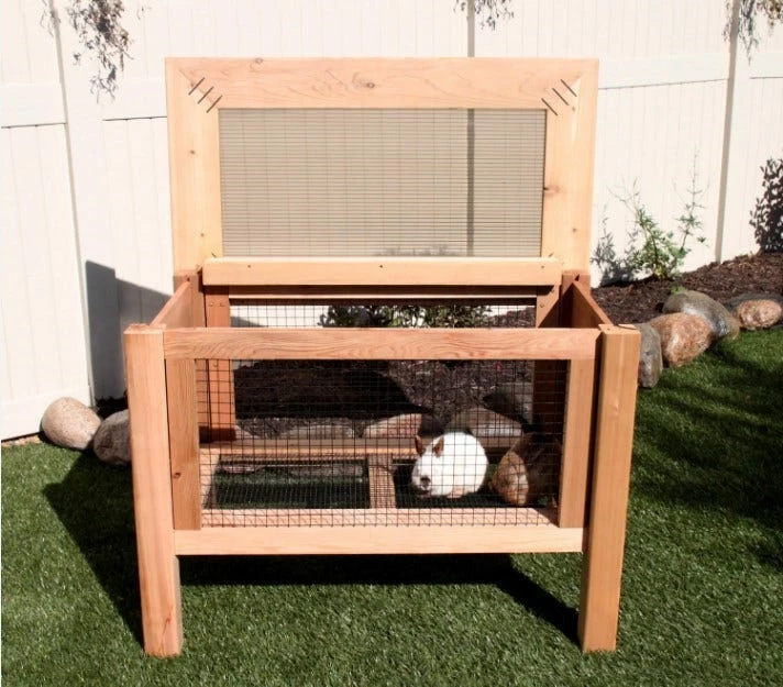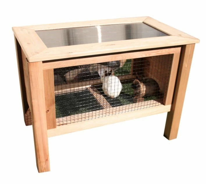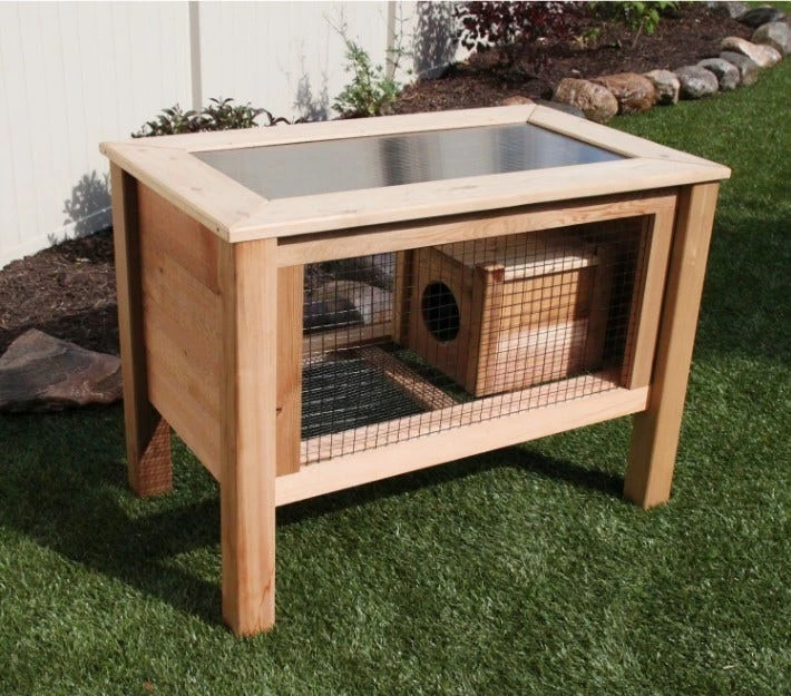 The Gronomics Rabbit Hutch is the perfect shelter for your pet. It’s made from 100% Western Red Cedar and features rust resistant wire for the floor and side panels. The hutch is 24”W x 45”L x 32”H and is designed to protect your animals against harsh weather conditions. Easy access to the hutch is provided by the two piece folding lid. The hutch features tool free assembly which allows you to slide it together in minutes. The Rabbit Hutch also includes a nesting box.