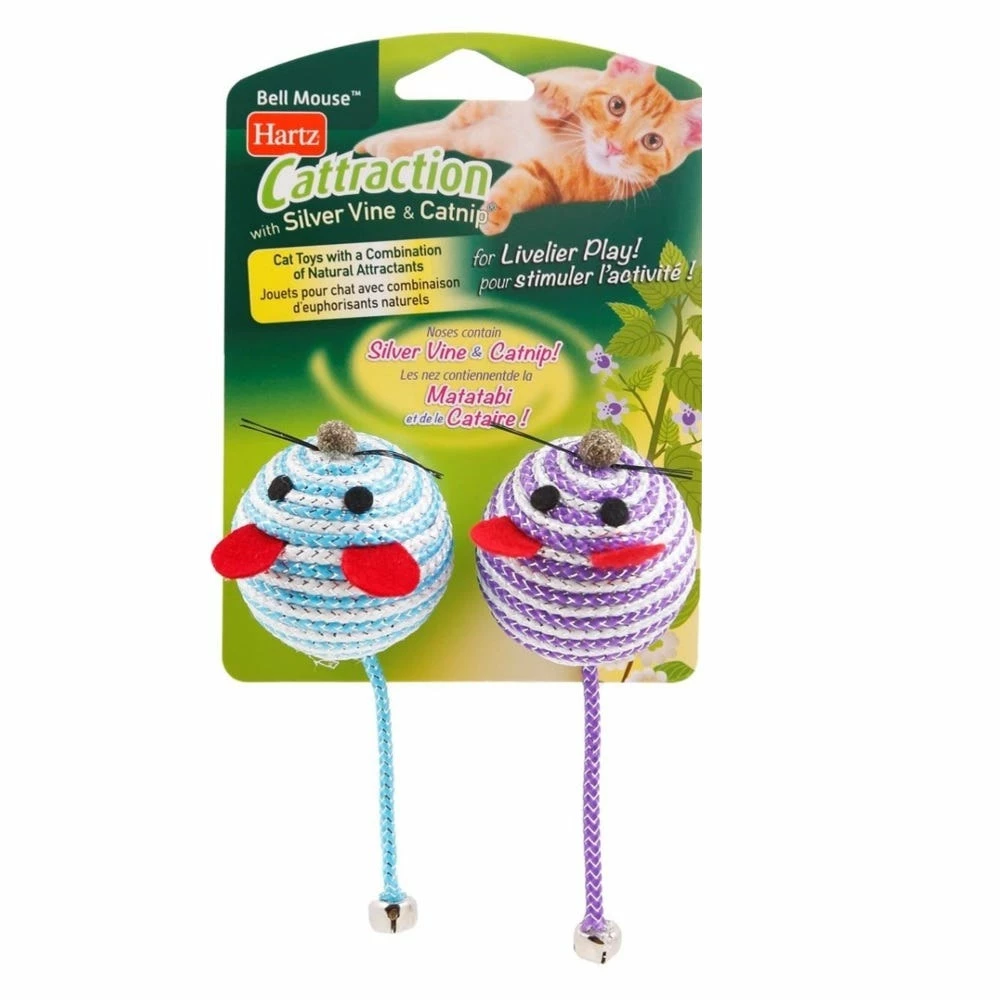 - The 2 Cattraction sparkly Bell Mouses combines Silver Vine and Catnip to provide a natuarl attract for cats to enjoy.