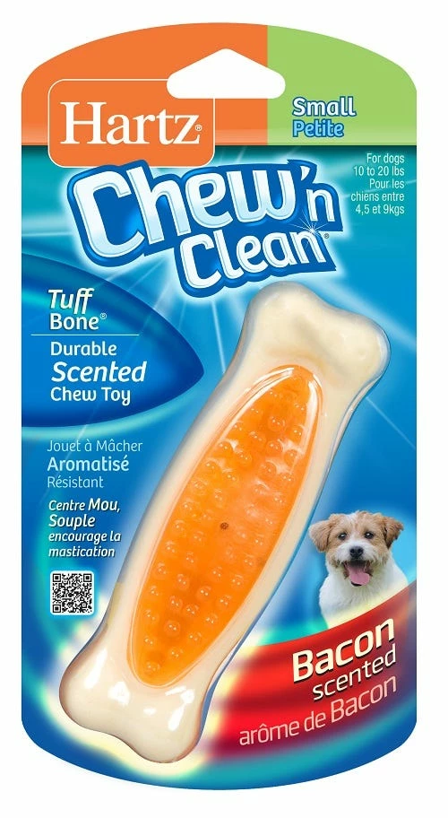 - The Hartz Chew ‘n Clean Tuff Bone is a long-lasting chew toy constructed from durable materials that withstand mild to moderate chewing.