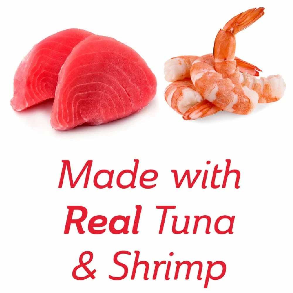 Water, Tuna, Shrimp, Natural and Artificial Flavor, Tapioca Starch, Natural Tuna Flavor, Guar Gum, Annatto Extract Color, Carmine Color.