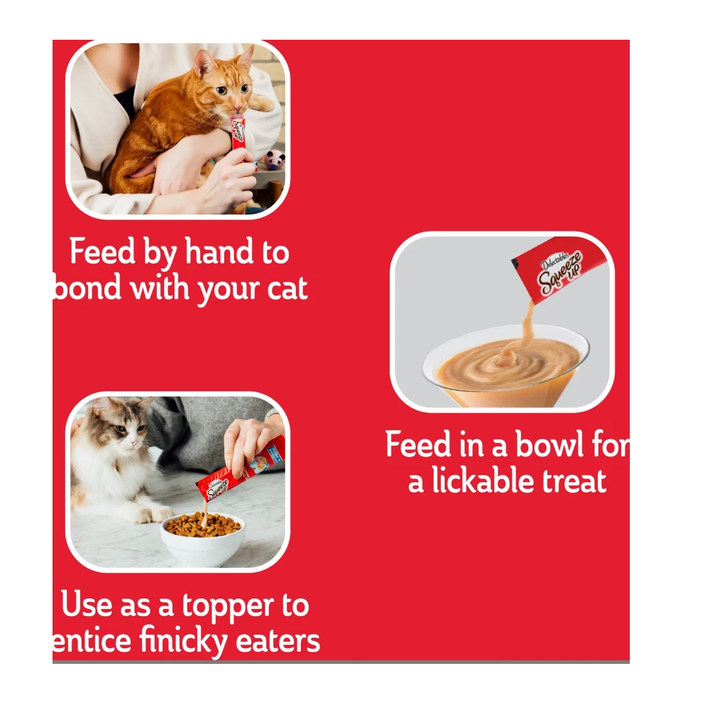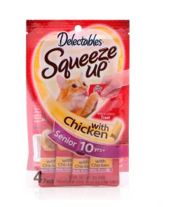 - Chicken Squeeze Up puree is made with real chicken and tuna and specially formulated for senior cats 10 years of age and older.