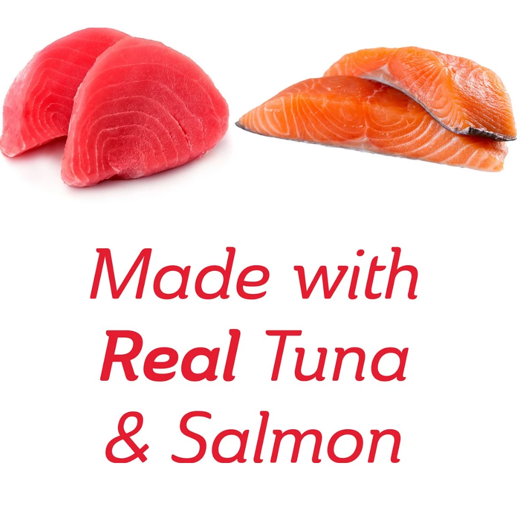- Mess-free tubes feature mouthwatering tuna & salmon flavor.