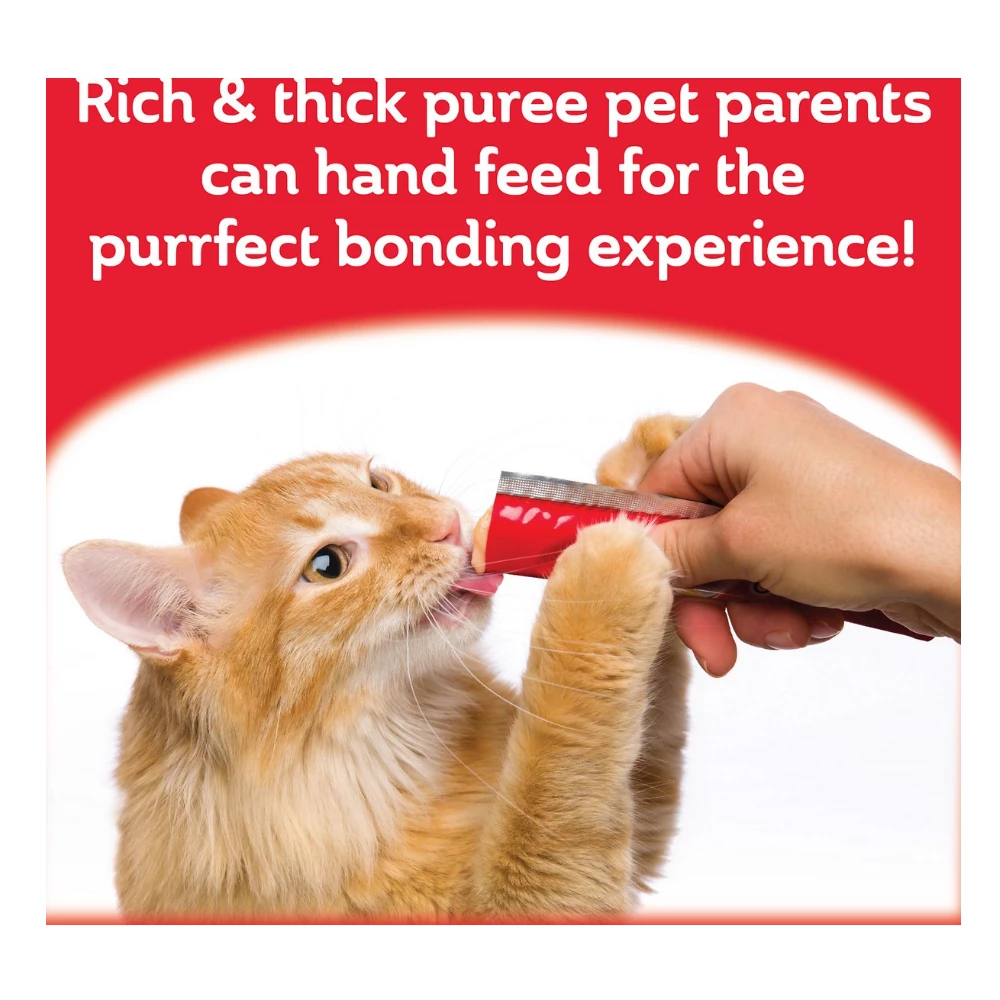 - Rich, thick puree comes in a lickable tube for a fun and delicious treat.
