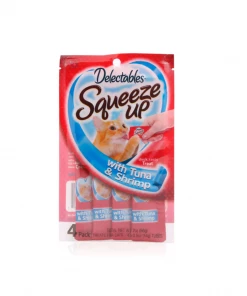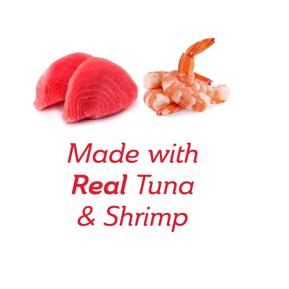 - Tuna and Shrimp Squeeze Up puree is made with real tuna, shrimp and chicken that your kitty will paw-sitively love.