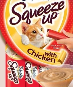 Give your cat a new way to snack with the Hartz Delectables Squeeze Ups with Chicken Lickable Cat Treat. Because he’s extra special, you need an extra special way to give him a reward. Coming in a lickable tube with the mouthwatering flavor of chicken, you can hand feed your kitty for a fun and bonding experience. Or, squeeze the goodness into his bowl and watch him lick away! It’s also a great topper for dry food, with a rich and thick puree that mixes right in and entices him to gobble up every last bite. Any way you serve it, this lickable treat will leave him licking his chops!