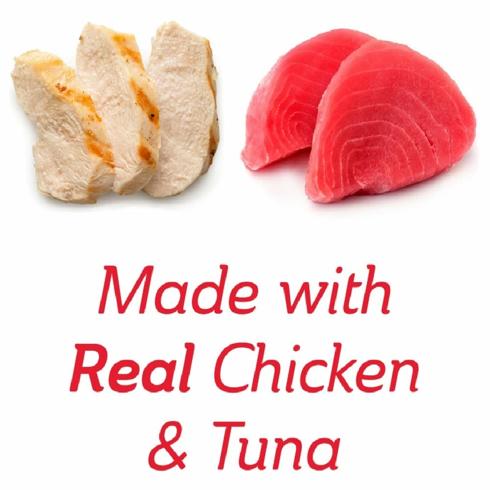 - A delicious puree made with tender real tuna and real chicken