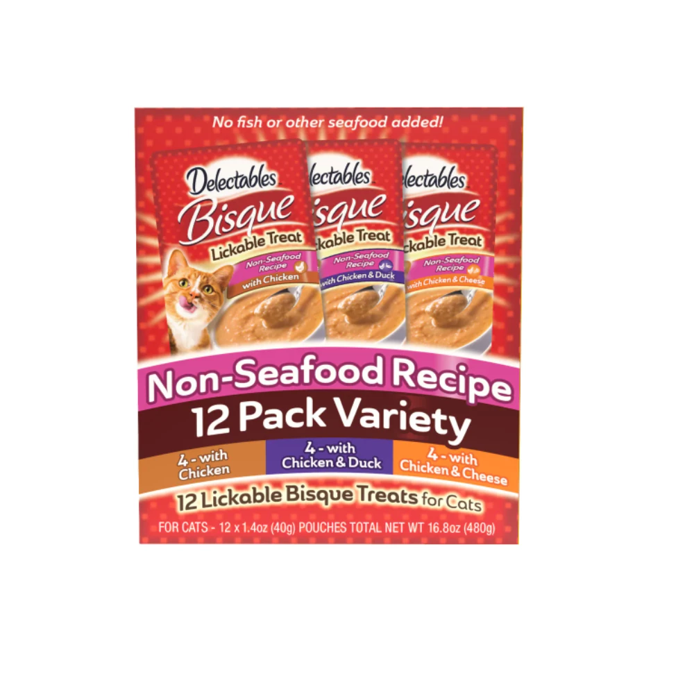 - Combines tender chicken, duck, and cheese without any seafood into a into a lickable bisque treat so delicious cats lick the bowl clean.