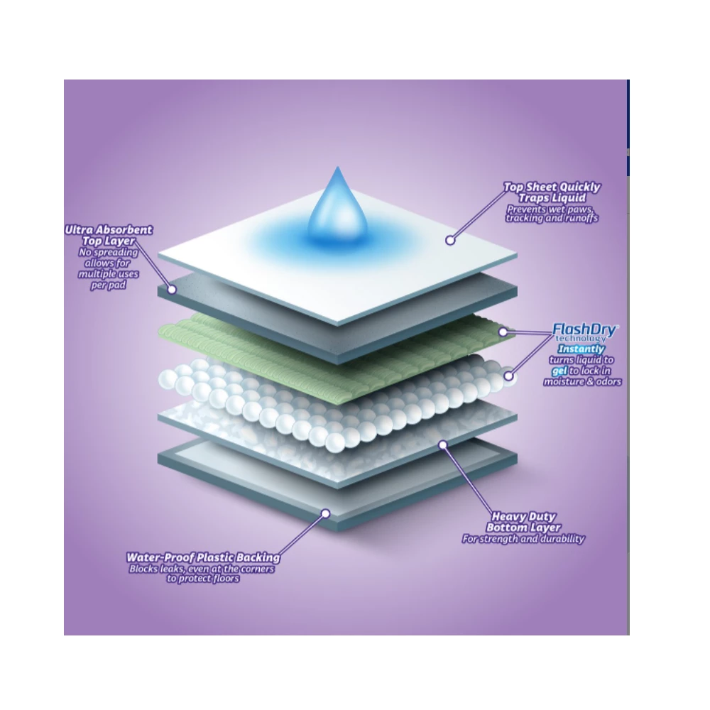- Flash-Dry technology quickly turns urine into a gel so it stays safely confined in the pad.
