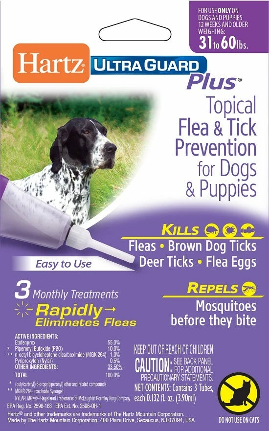 - Use only on dogs or puppies 31-60 pounds, 12 weeks of age and older.