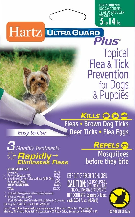 - Use only on dogs or puppies 5-14 pounds, 12 weeks of age and older.