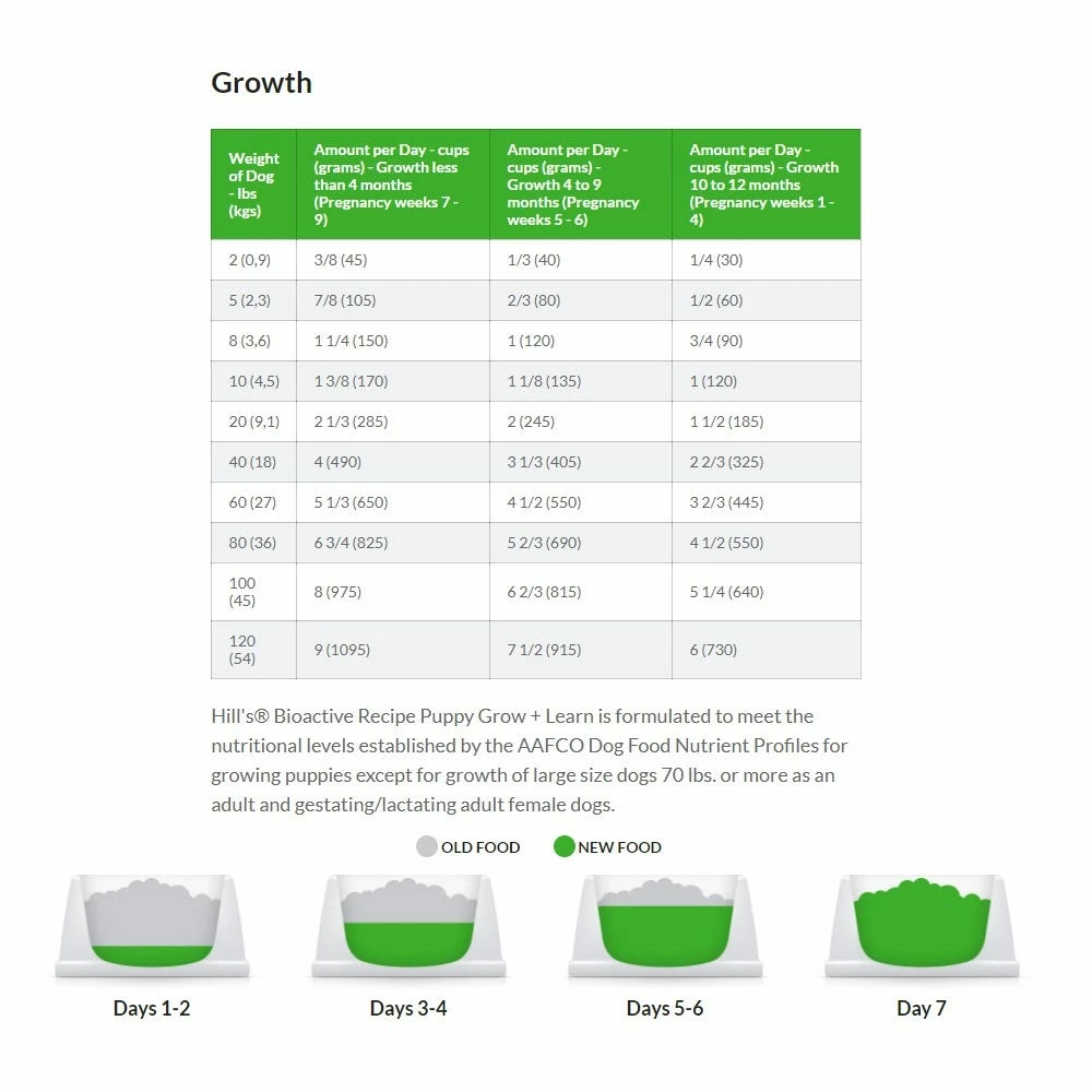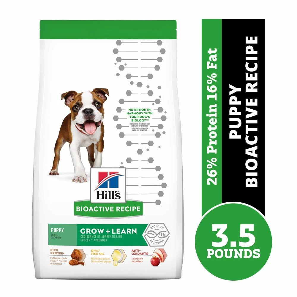 Hill’s Bioactive Recipe Grow + Learn contains a synergistic blend that includes Rich Protein, high levels of Fish Oil and Powerful Antioxidants.