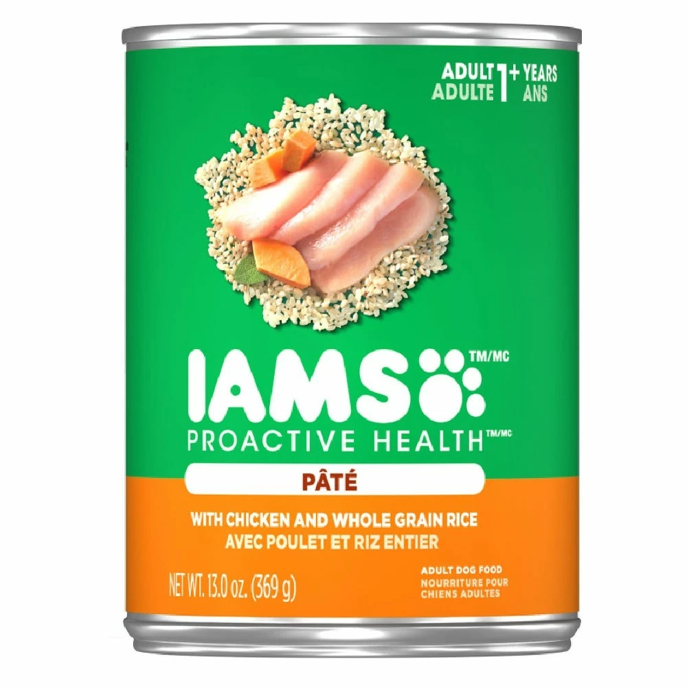 Serve up something yummy with the Iams Proactive Health Adult With Chicken & Whole Grain Rice Pate Canned Dog Food. Made from natural ingredients that are slow-cooked in real broth, your dog will think he’s getting a portion of your own dinner. Plus, there’s added vitamins and minerals to offer complete and balanced nutrition, because it’s crafted with the health of your pet in mind. Including fatty acids for healthy skin and vitamins that boost the immunity, there’s something to feel good about in each and every bite—and it’s made precisely for the needs and energy of your adult dog.