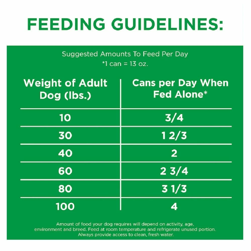 Amount of food your dog requires will depend on activity, age, environment and breed. Feed at room temperature and refrigerate unused portion. Always provide access to clean, fresh water.